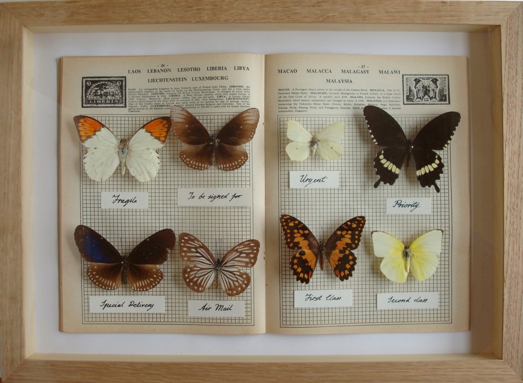 Postage Butterflies, mixed media, 42 x 30 x 4 cm, 2014, £200